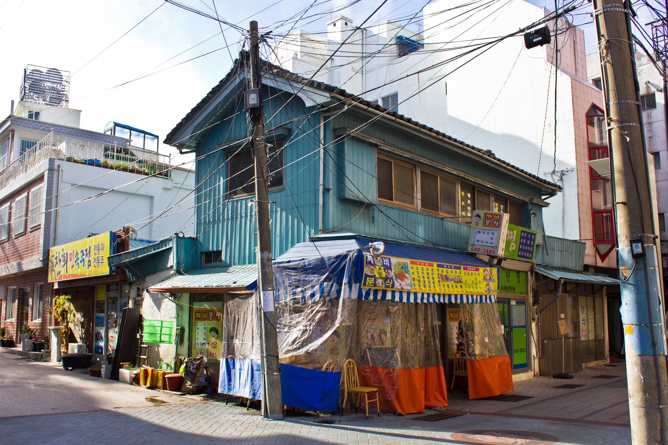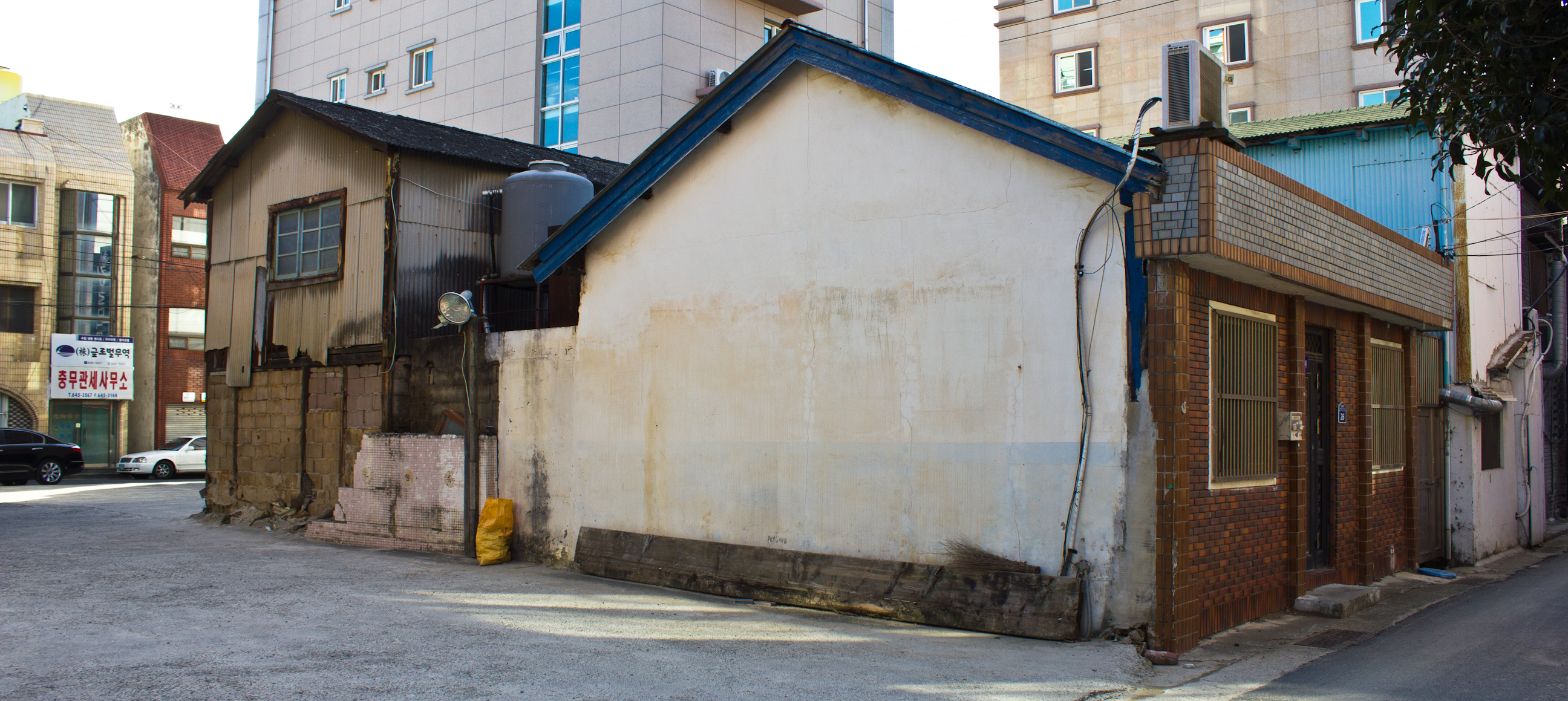 There are few buildings left in the main port area. Their facades have been redone with corrugated tin or newer tile. Though not pictured below, Tongyeonghaean-ro also has some storefronts that, aside from their roofs, look absolutely nothing like their former selves. They weren’t worth photographing, and none of the buildings in this dong are particularly noteworthy. However, some are included here simply because they are the only buildings of their kind left in the area.