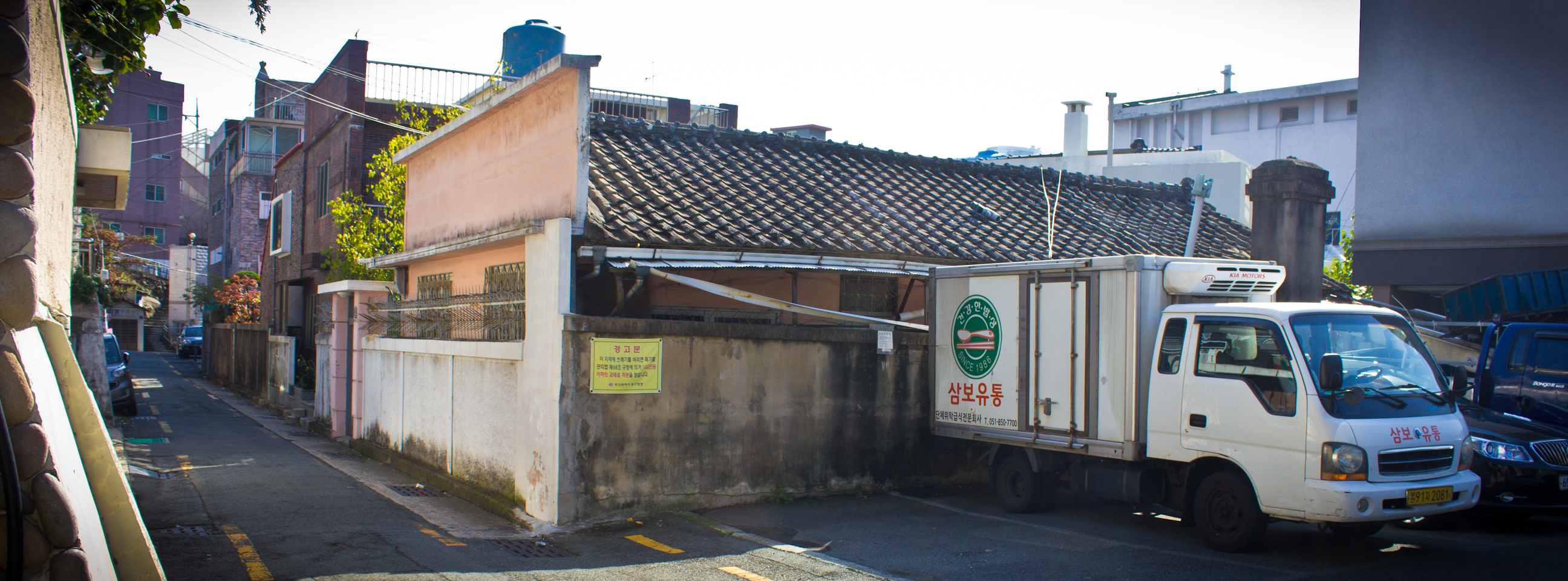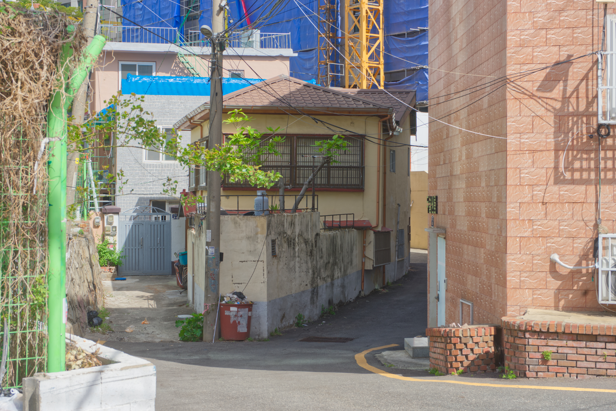 Update (April 2, 2022): The buildings pictured below have been demolished and the lots developed as the Beomyang Reus Central Bay Apartments (범양레우스센트럴베이아파트), between 2017-2021. Only the previously pictured Tanaka house remains from this block.