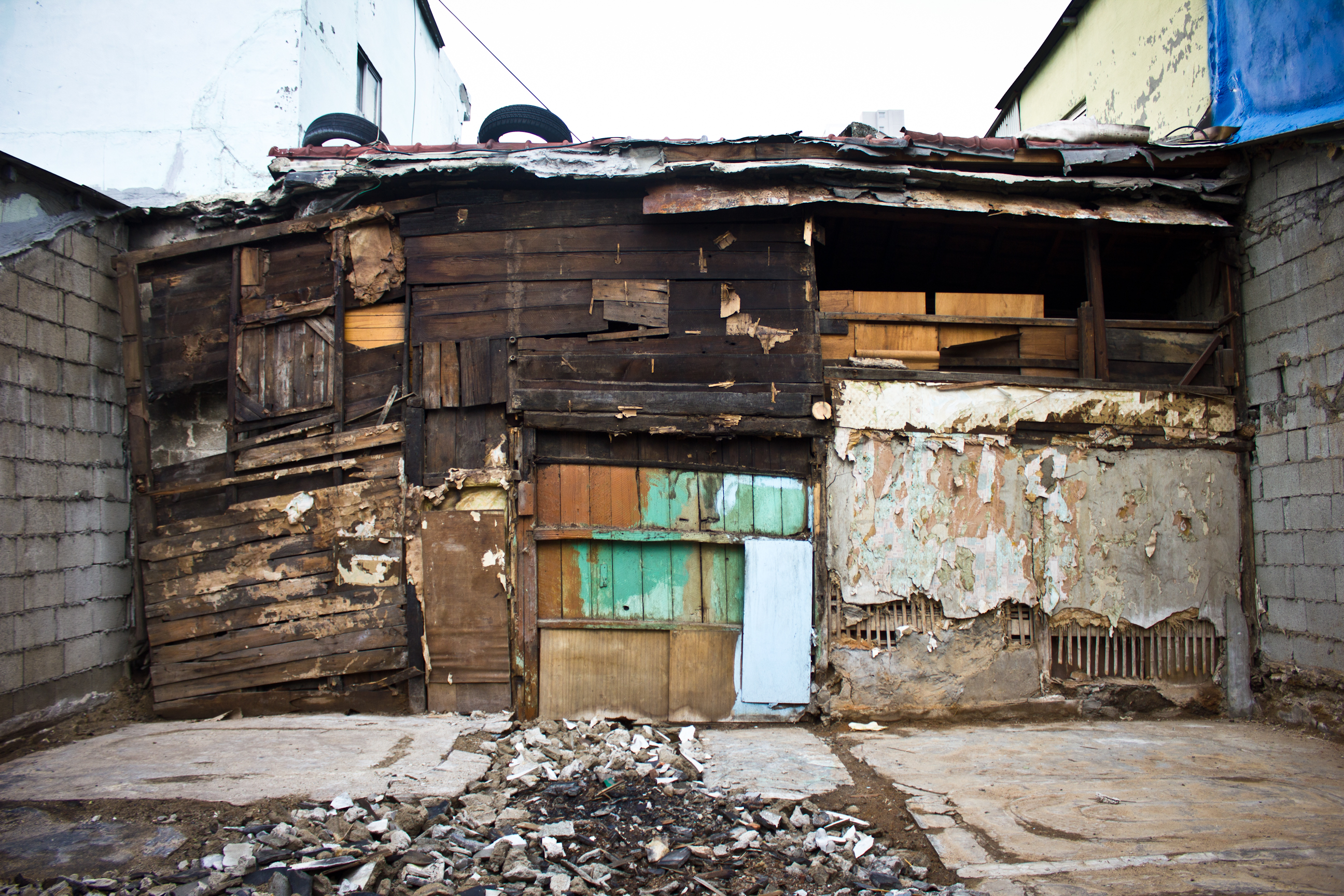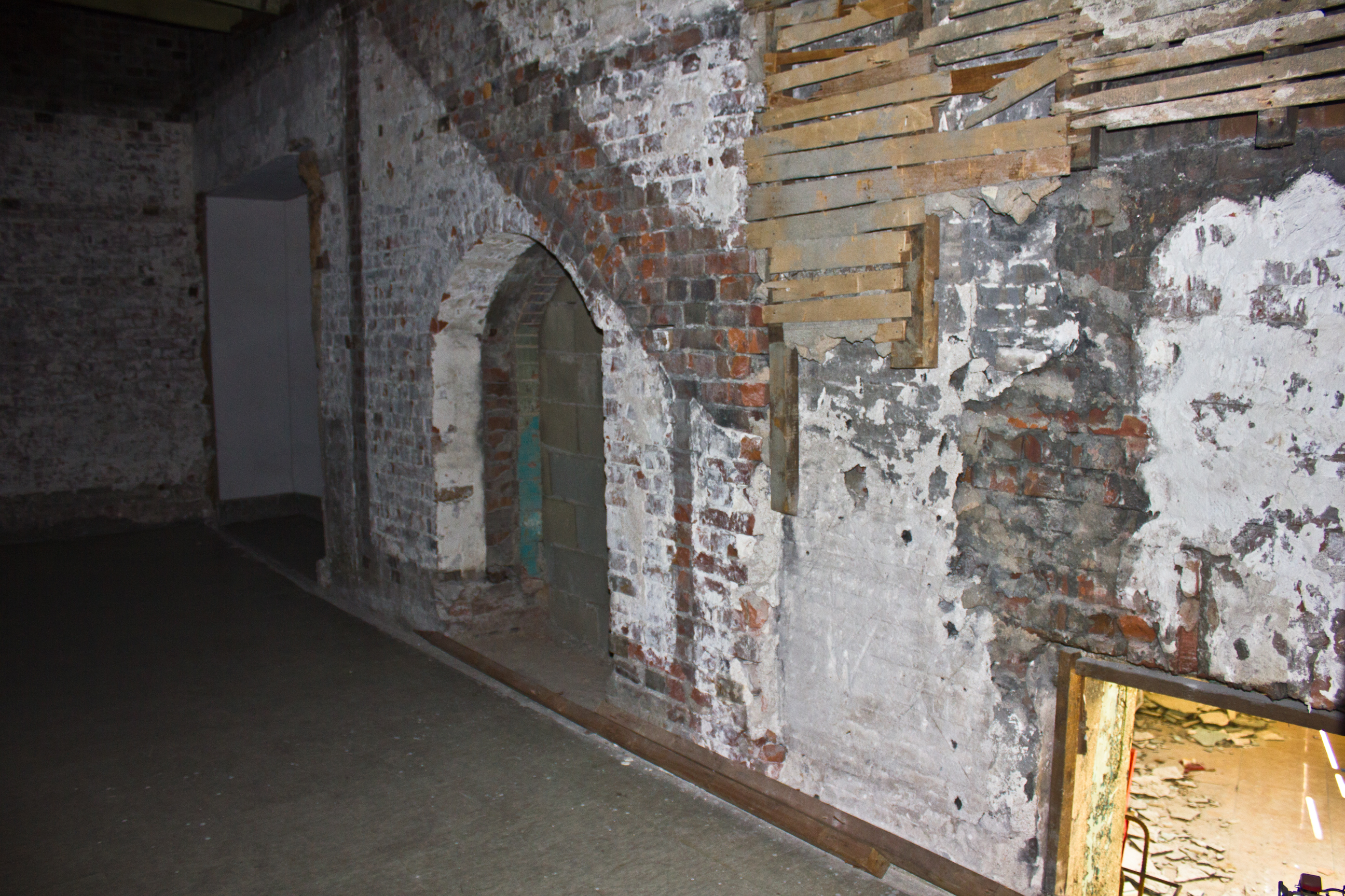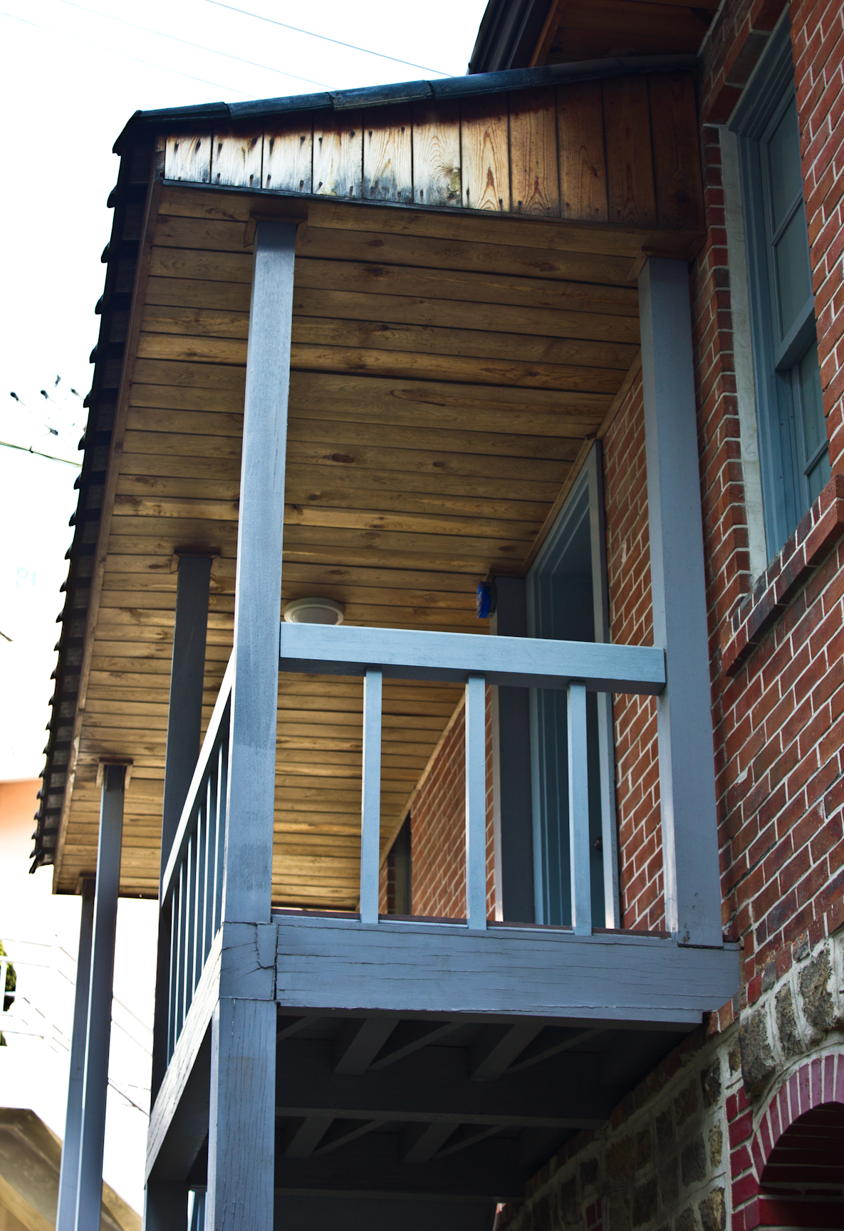 Parts of the former hospital’s interior are surprisingly well preserved. In fact, the sensation of really old wood floors creaking beneath your feet is something you don’t feel often in a country that now makes everything out of concrete. In the left section of the building, the original staircase and its banisters quaintly lean to one side as they have become less and less structurally sound over the years, but the ending balusters still have their original decorative carvings. The doors and some of the windows, if not original, are at least forty or fifty years old. The rooms on the upper floors have been wallpapered, but were done so long ago that a number of mold colonies have taken up residence. In the right section of the building, and in an area in the middle that connects the left and right parts of the building, there is a lot of old exposed brick. As you walk into that right section, you are greeted by large, open rooms that extend from the front of the building to the back with no spatial divisions aside from load-bearing beams in the center. Lastly, the back room takes on the appearance of a large garage or loading bay.