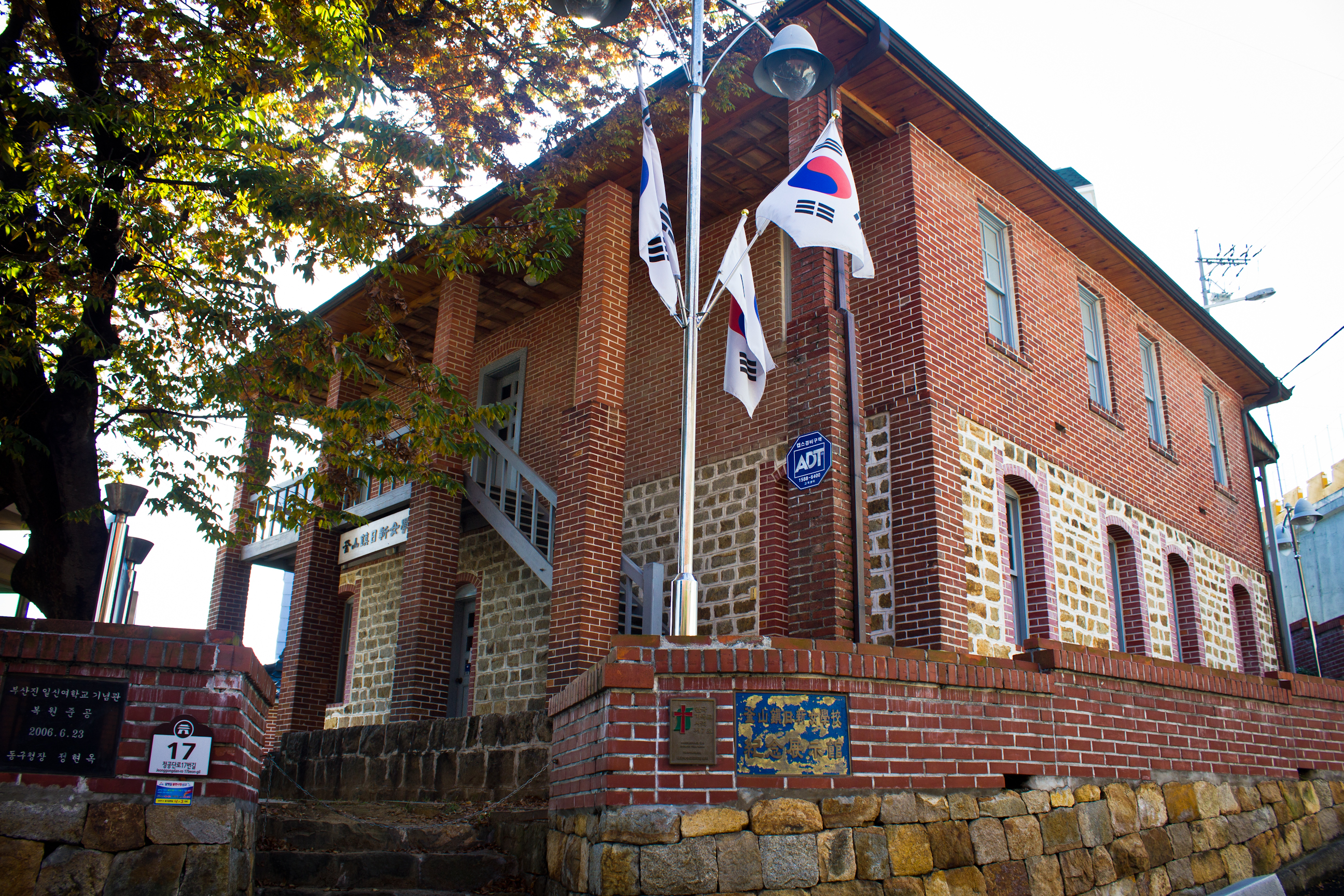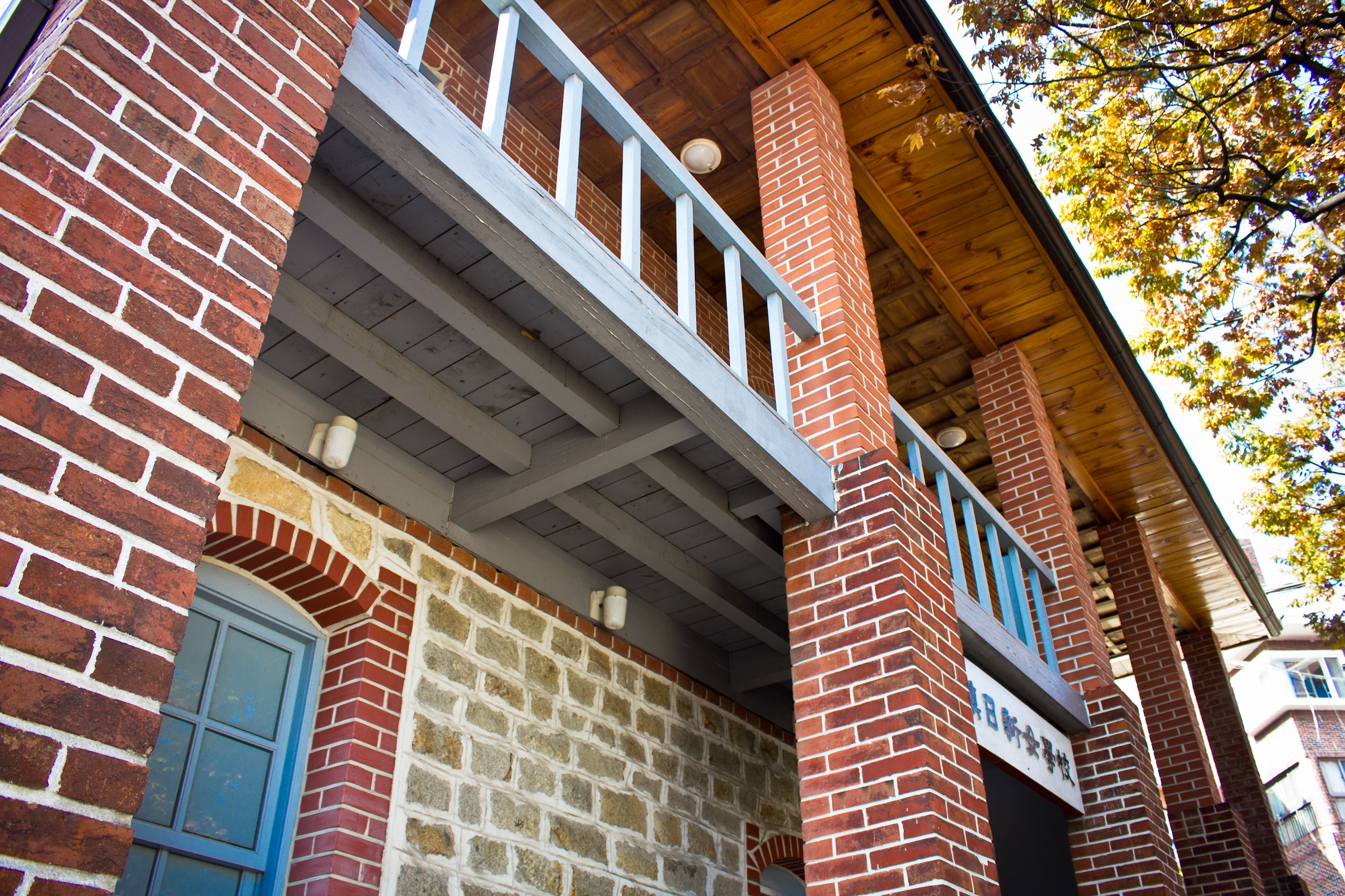A beautifully preserved example of early modern educational facilities in Busan, Busanjin Ilsin Girls’ School sits on a hill that would have had a breathtaking view of the bay during the colonial period. Built in 1905, the first floor’s exterior was finished with what appears to be granite, and the second floor with brick. Rectangular windows uniformly line every wall, and a nice wooden staircase can be seen at the rear entrance. The staircase at the front entrance follows the same design as the rear staircase, but its second-floor landing is slightly longer. That a lot of the wood is intact and has been maintained so well is remarkable. The flat underside of the roof at the entrance, which covers the staircase, was constructed in geometric squares. It has now stood for more than a century, making it an incredibly important historical site as one of the few buildings to have made it past one-hundred years old.