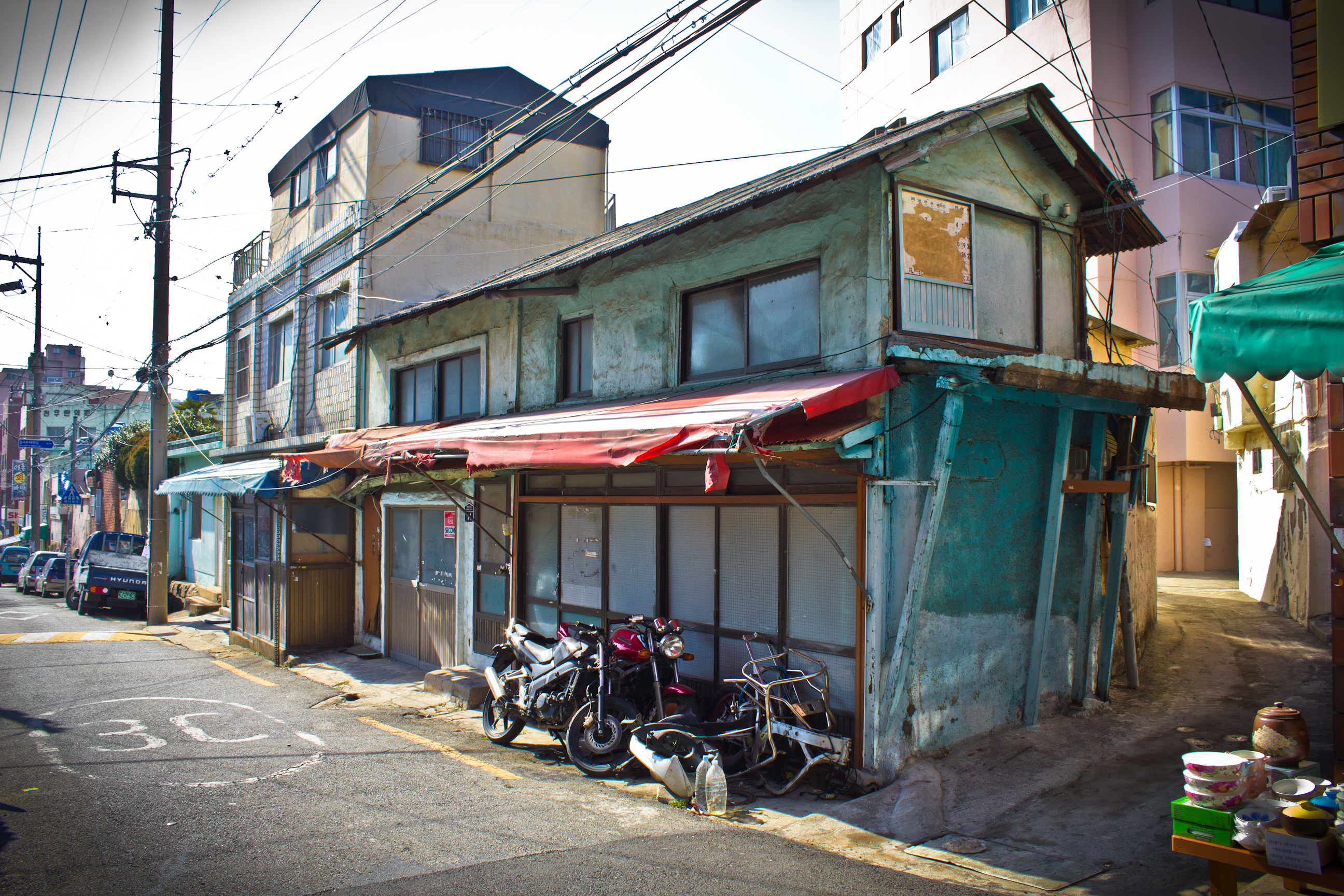 The maechukji village outside of present day Jwacheon Station may be the finest remaining example of Japanese city planning in Busan. This is not to say that the individual structures are historically or architecturally significant, but rather that it is the only neighborhood left that retains its overall Japanese-ness, thus making the area as a whole significant in its representation of redeveloped urban spaces during that period. Houses were put on a grid and, in block form, resemble modern Western city planning. A lot of the buildings have been reduced to tin-roofed shanties whose walls have been painted or cemented over numerous times, yet the original frames of buildings from the colonial and post-liberation periods still remain.