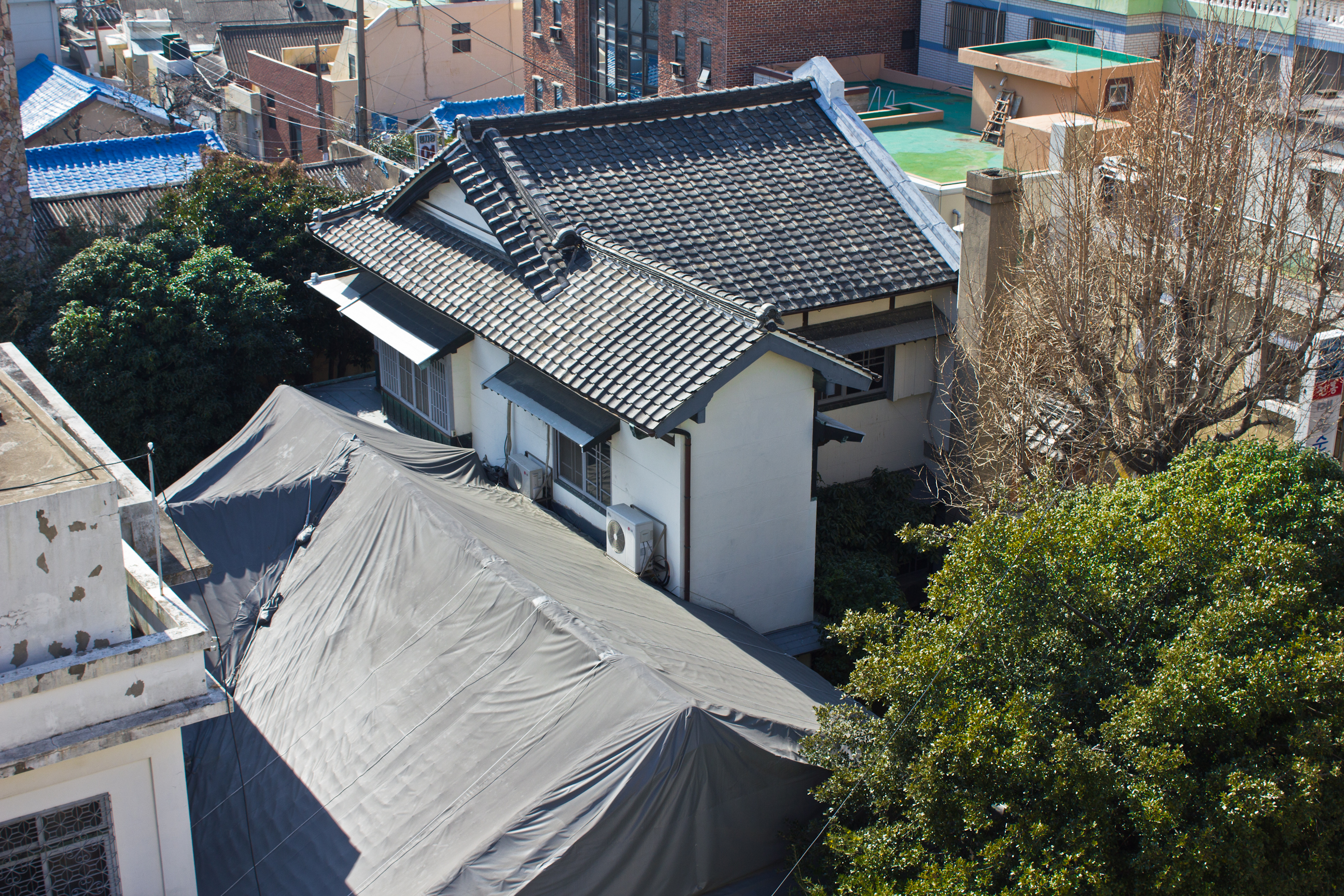 Without a doubt, one of the most beautiful Japanese houses in the center of Busan is down the tiny side street of Gogwan-ro 13beonna-gil. Unfortunately, it has proven to be unvisitable. While I was only able to get photos of its exterior and roof, the photos provided on the Cultural Heritage Administration’s website, which were taken from inside the house’s garden, show it to be an incredibly well maintained structure. Do yourself a favor and take a minute to scroll through the pictures on their site, because you may never get the chance to actually step foot in the house. This is because it was bought by the former Ilmaek Foundation chairman, Hwang Seong-rae, in 1971.10 A phone call to the heritage group confirmed that the building is privately owned. Ringing the doorbell at the gate has also proved to be useless as the house has been vacant every time I’ve visited, and a local in the street confirmed that nobody would be there.