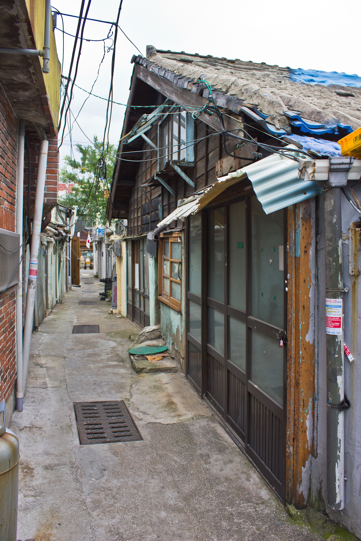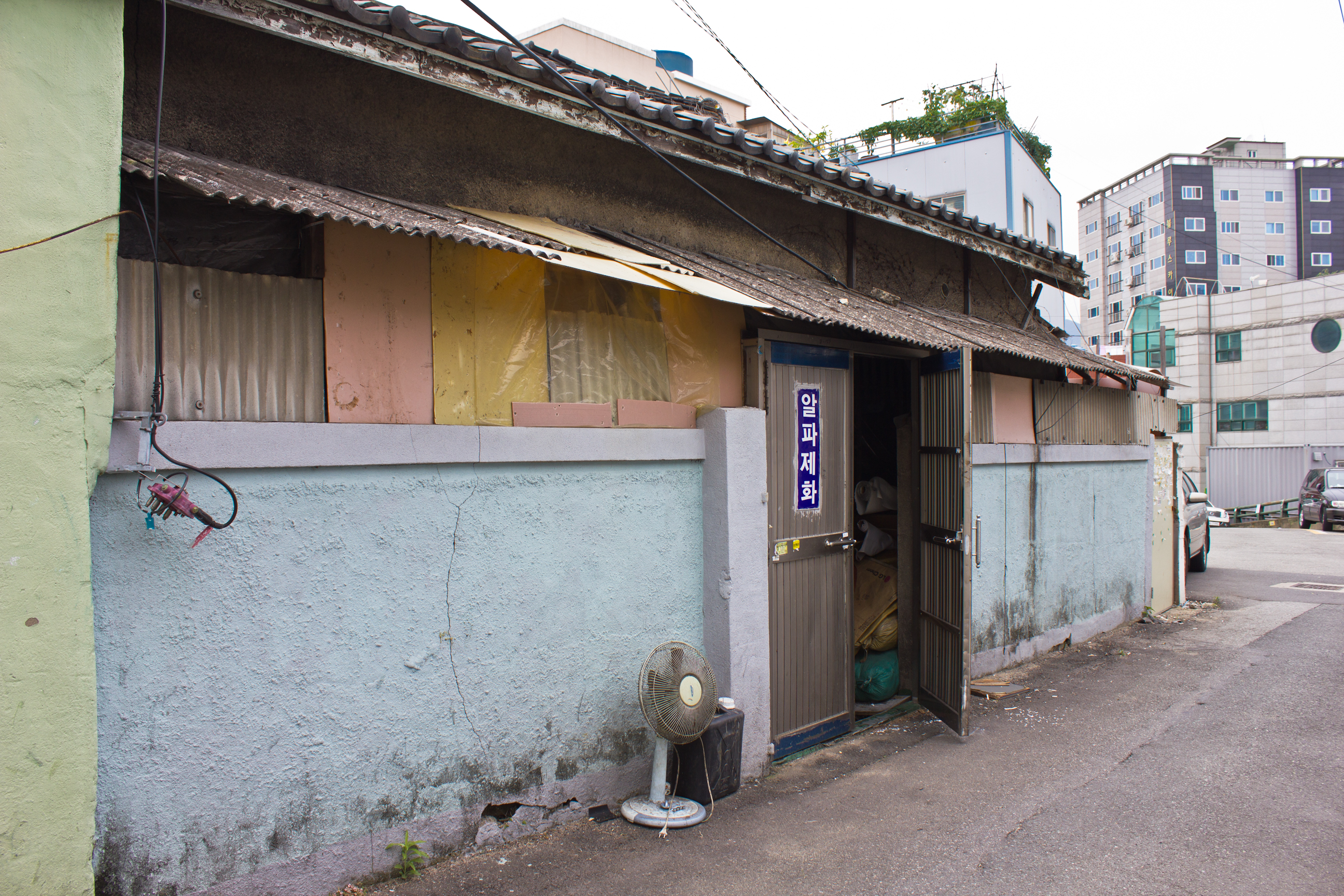 Yeonje-gu was the site of the old Geoje Station. The area also had a block of colonial structures that have since been demolished. They appeared to be some kind of row or group housing. The few structures that are left are hardly noteworthy, yet these are some, if not all, of the ones that remain. One lone Japanese two-story house sits hidden in an alleyway, and it is the most significant structure I could find there.