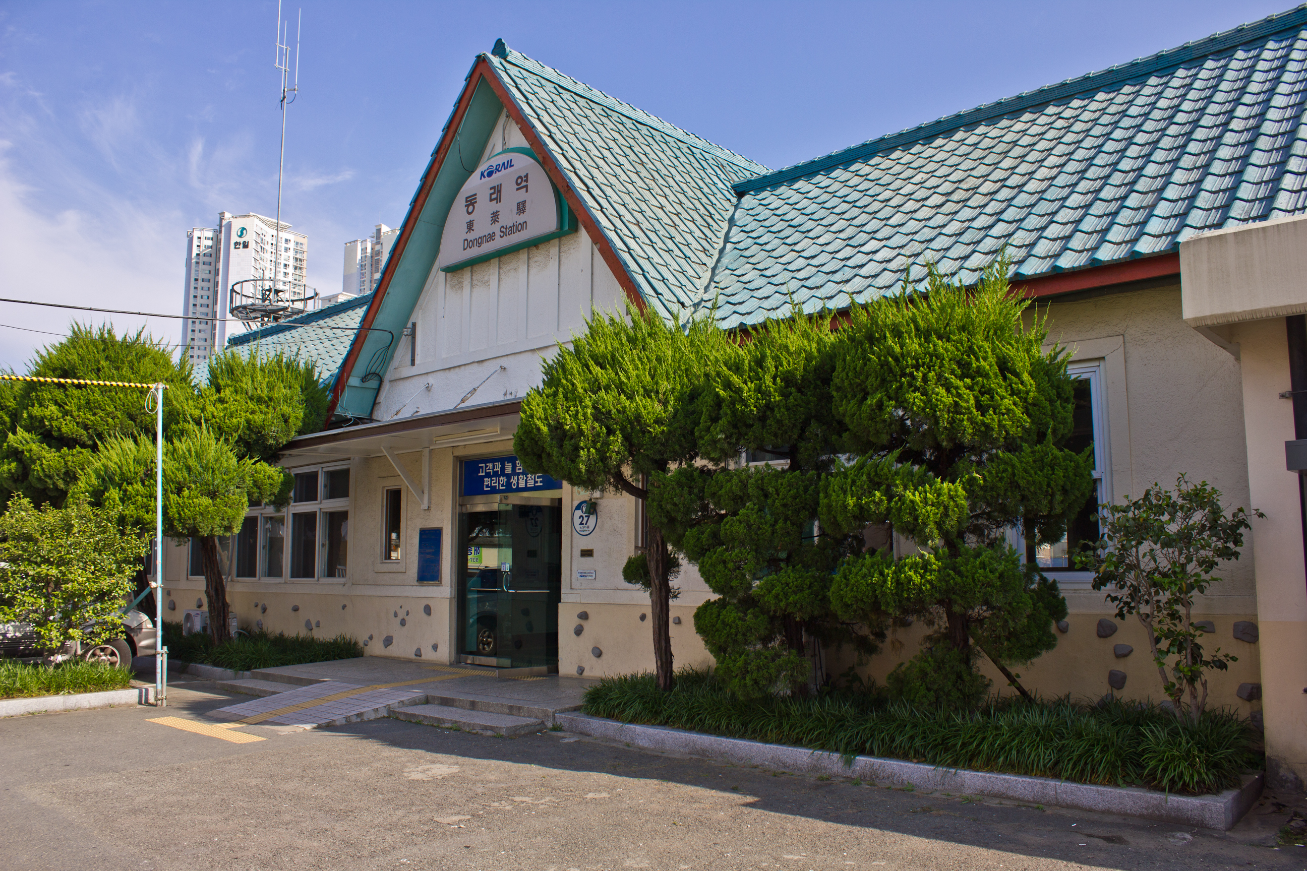 In 1934, Dongnae Station was established. The rail line to this area was, however, constructed some time in 1933. Typical of colonial era train stations, it features a gabled roof. This station has recently been discontinued and its tracks ripped up – presumably because nobody uses it anymore.