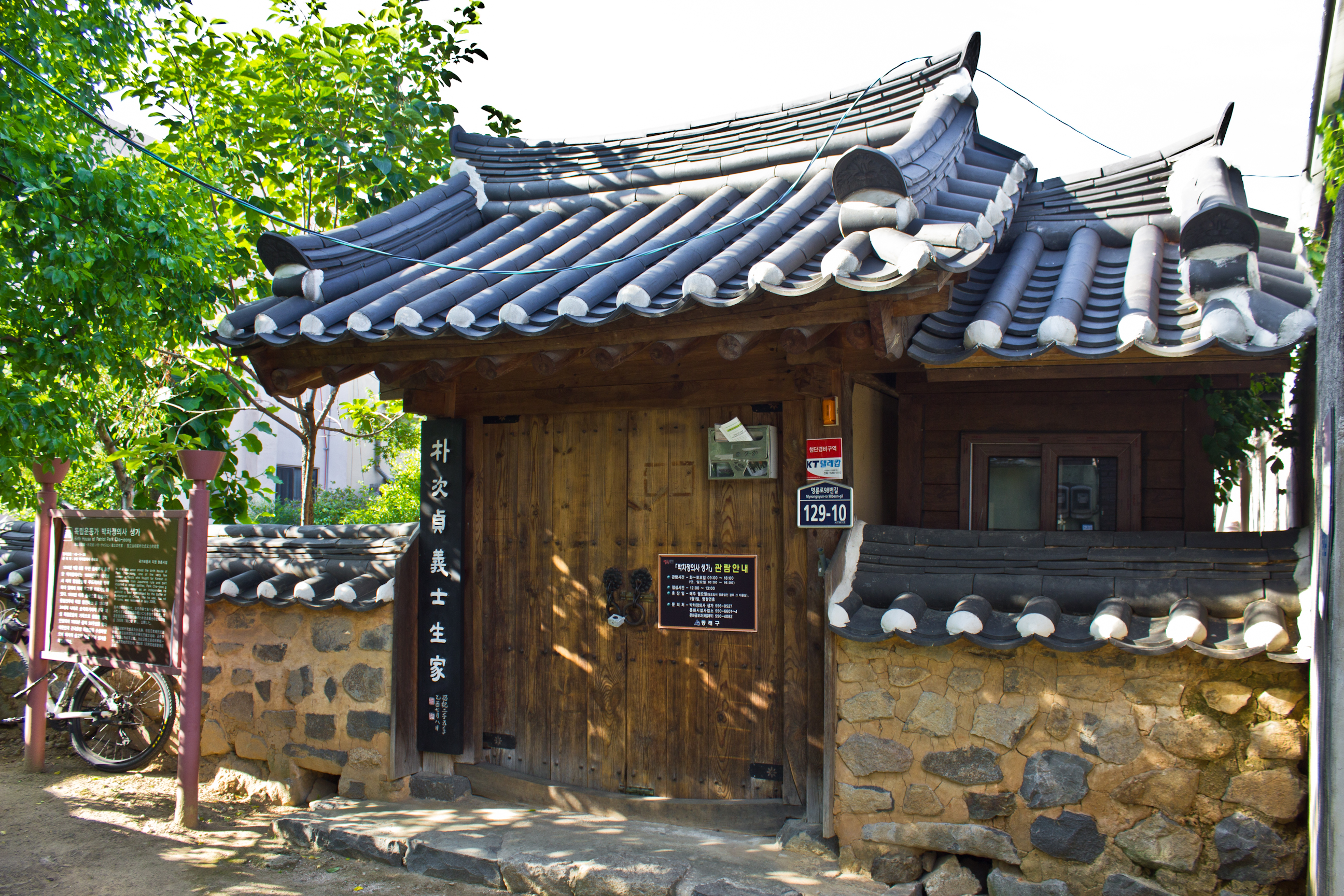 Up the street from the station are a couple of old warehouses and a Japanese house. A tiny alley leads to the birthplace of one Park Cha-jeong, who was an independence fighter and activist. Born in this hanok, which was discovered in ruins and restored in 2005, her most memorable fight is noted as being the Battle of Kunfunguan, China. The house dates to the time of the Japanese occupation or the Great Han Empire. Most of the structure appears to be a reconstruction and not original.
