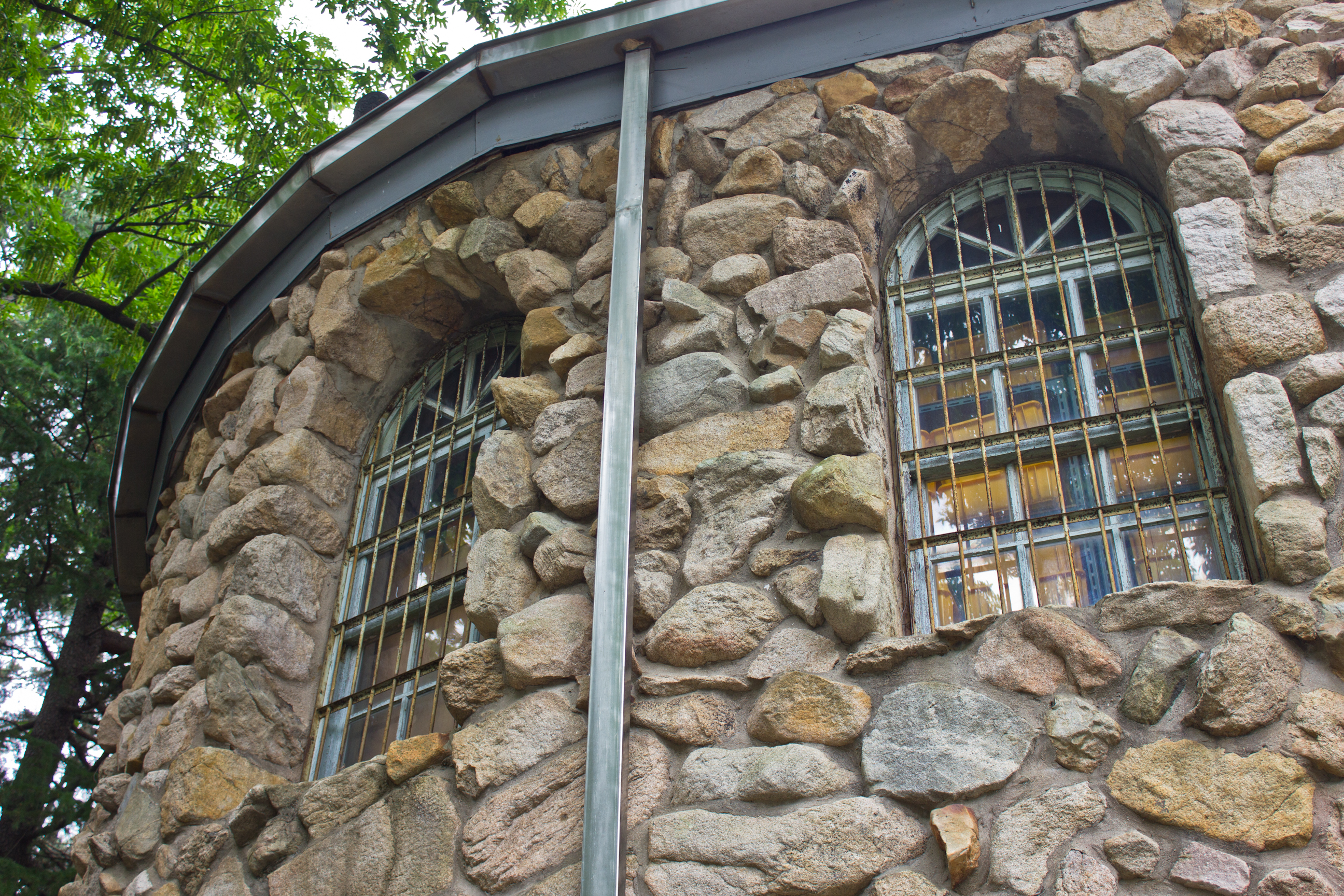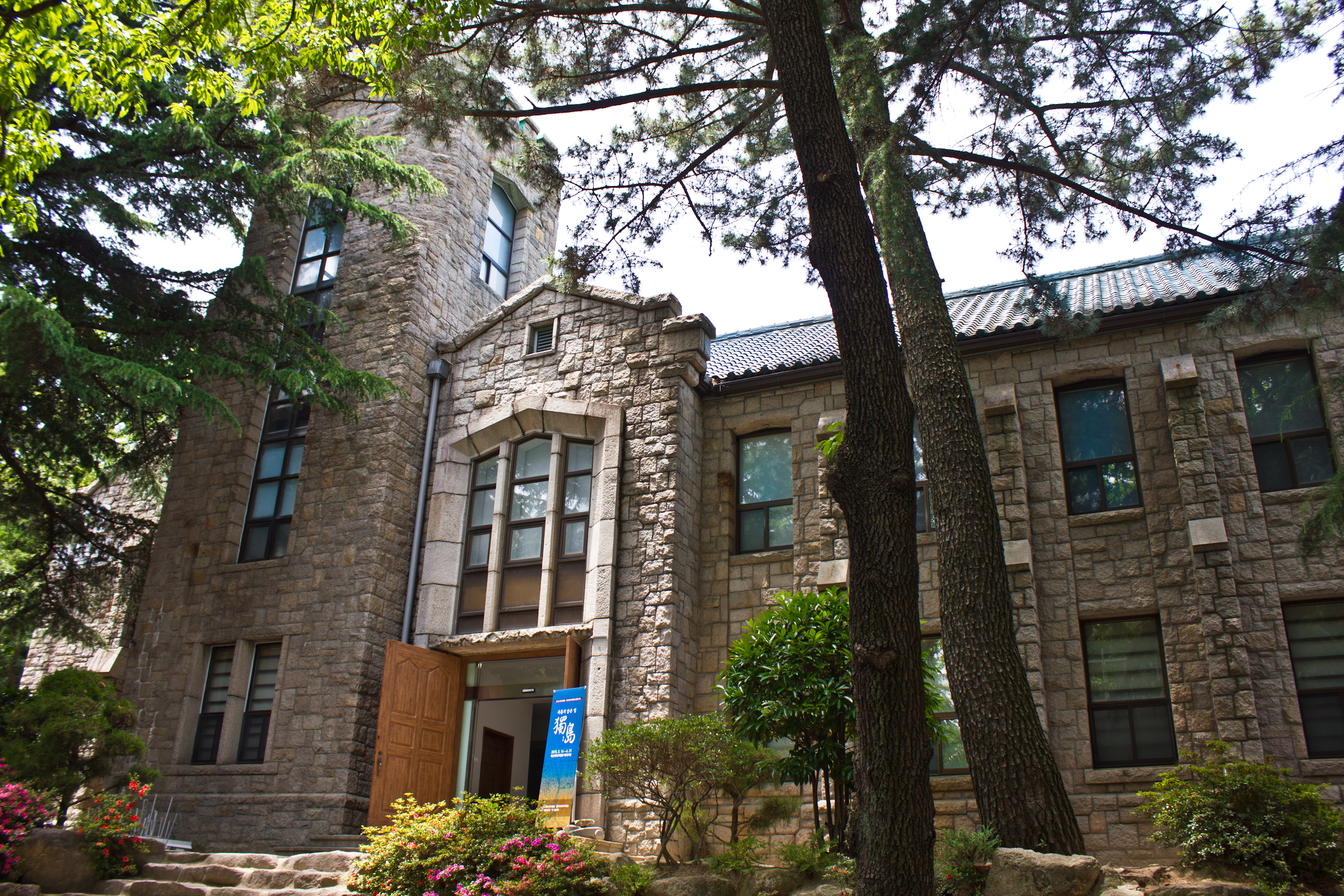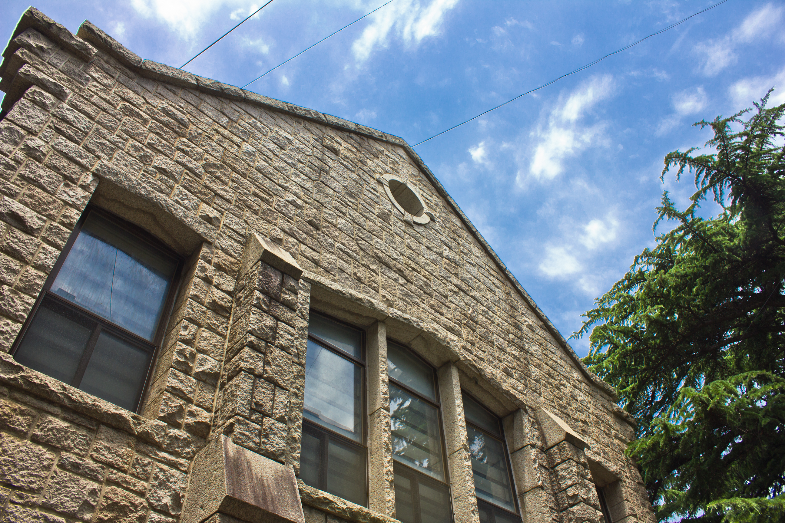There are two mid-century structures remaining on the campus of Pusan National University. Its Gothic style museum was built of square-cut stones in 1959 by architect Kim Jung-eop (김중업).49 The present day annex, however, was constructed in 1956.50 It was built using a rocaille (pebble) style exterior that makes use of uneven, uncut stones. However, the building also seems to be influenced by early Italian and Byzantine architecture. Judging by old photos, the roof was replaced at some point. The annex was built in an “L” shape with rows of arched windows lining the first and second floors of the long part of the “L” while only one row of windows line the short part of the “L.” Though the annex was used to store “evacuated” national treasures between 1957 and 1960, it wasn’t until 1963 that the building obtained museum status.51 The annex yard now serves as a display for carved stones made before the Joseon era.