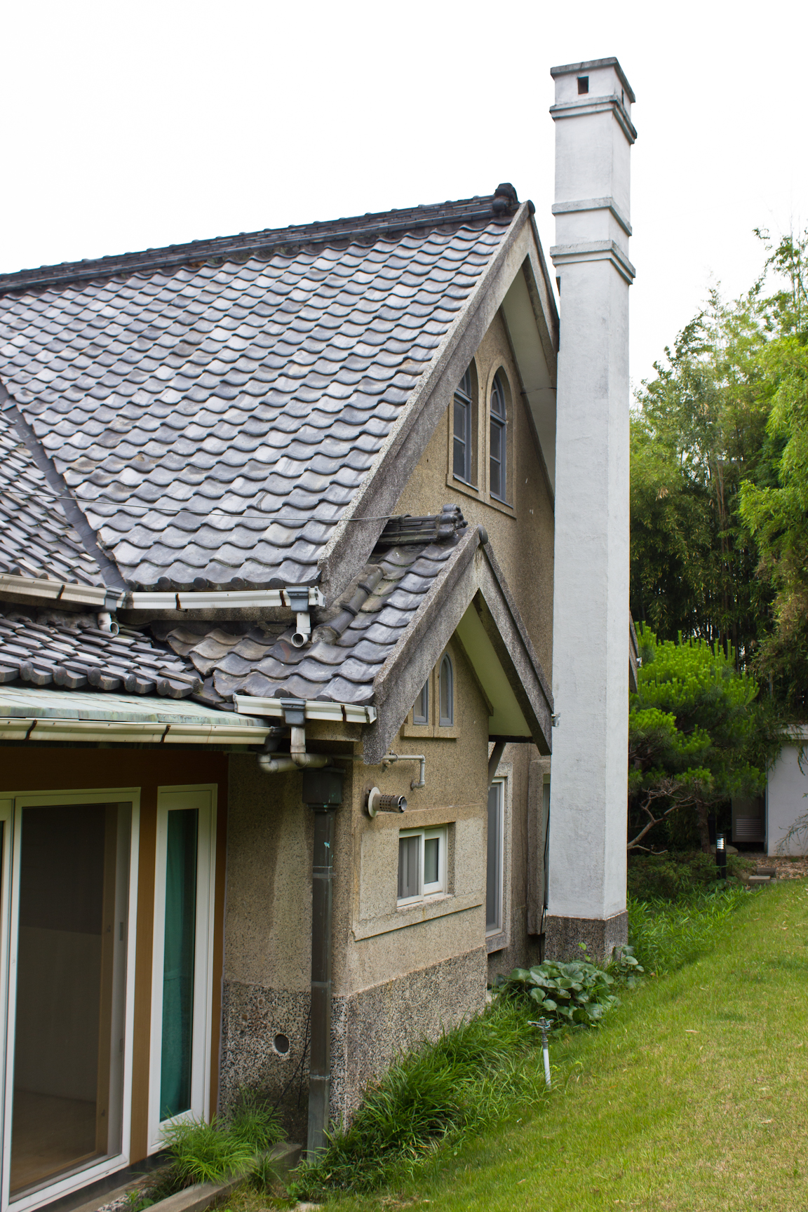 Up a street that passes a crumbling old building with giwa tiles is a private residence that is noted for some Goryeo era carvings, including a five story stone pagoda, that are kept inside the garden. The main house itself, however, is quite interesting. It features a gabled roof and arched, Victorian inspired windows that neatly line the first floor. Dormer windows are on the roof. The window frames are made of wood whose paint looks somewhat worn, and it’s the kind of style that would have been used during the Japanese occupation. However, the house doesn’t quite look like a Western-styled Japanese-built colonial era structure. In fact, it looks more like some of Korea’s early modern missionary homes. The giwa roof and pebbled concrete walls could put it in 1950s, but the front porch and inner hall look like designs from the 1970s or 1980s. This kind of pebbled concrete facade was sometimes used to build new, or cover over old, exterior walls in the 1950s, making me curious as to whether or not there is anything underneath the current facade. Behind the home is a two story building that also appears to be relatively old. There seems to be no information available on the house, so if you’re reading this and you know something about it, please comment below. Construction workers doing lawn maintenance, who were nice enough to let me in to photograph the Goryeo pagoda, also knew nothing about the house except that it just changed hands and had a new owner.
