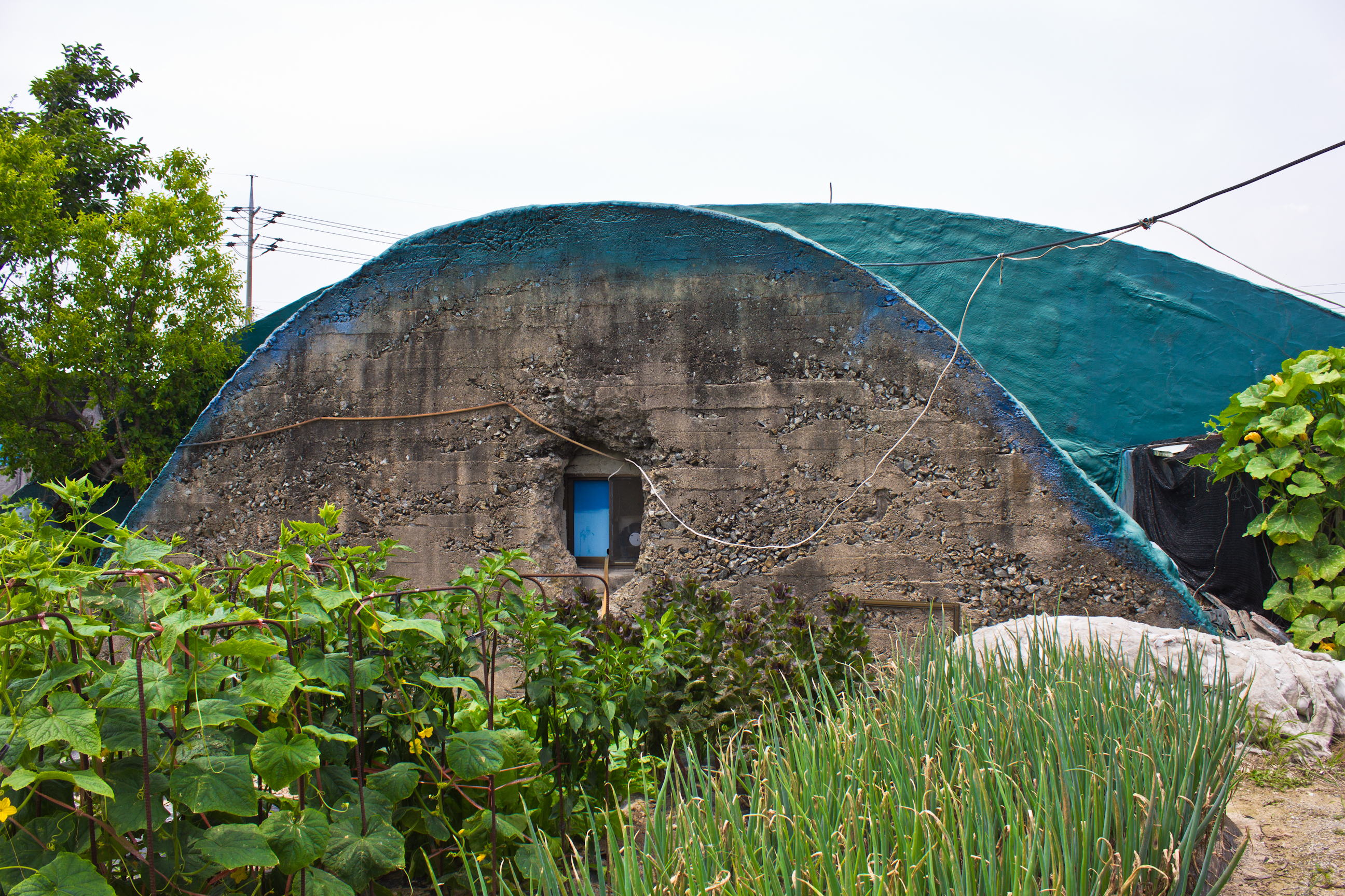 Two more bunkers are pictured below. The first one is right next to the previously pictured one and appears to be used as storage. An awning has been added to the facade. The second one pictured below can be seen from the main country road (Ipsosinpyeong-gil) and has had a newer section attached to it.