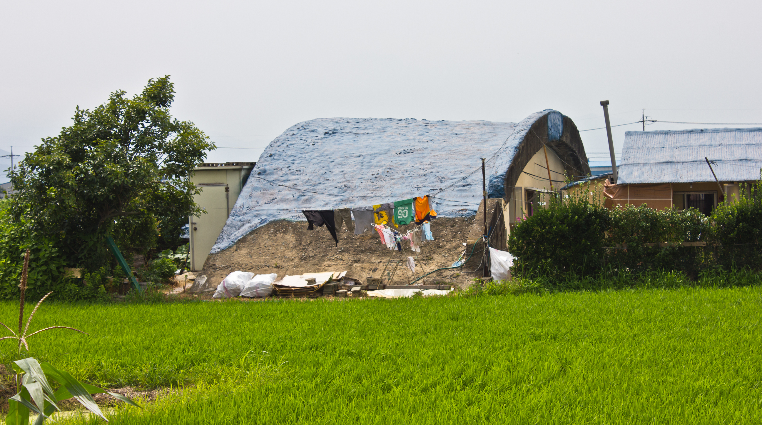 The old military buildings left by the Japanese are an example of the incredible military spending that started during the late 1930s. To be sure, Japan was using at least seventy percent of its budget on military by 1938.6 In preparation for the Pacific War, a number of installations were set up across Korea, including Daejeo. This is made evident by that fact that, in the 1940s, over twenty hanger bunkers were established across the previous wetland.7