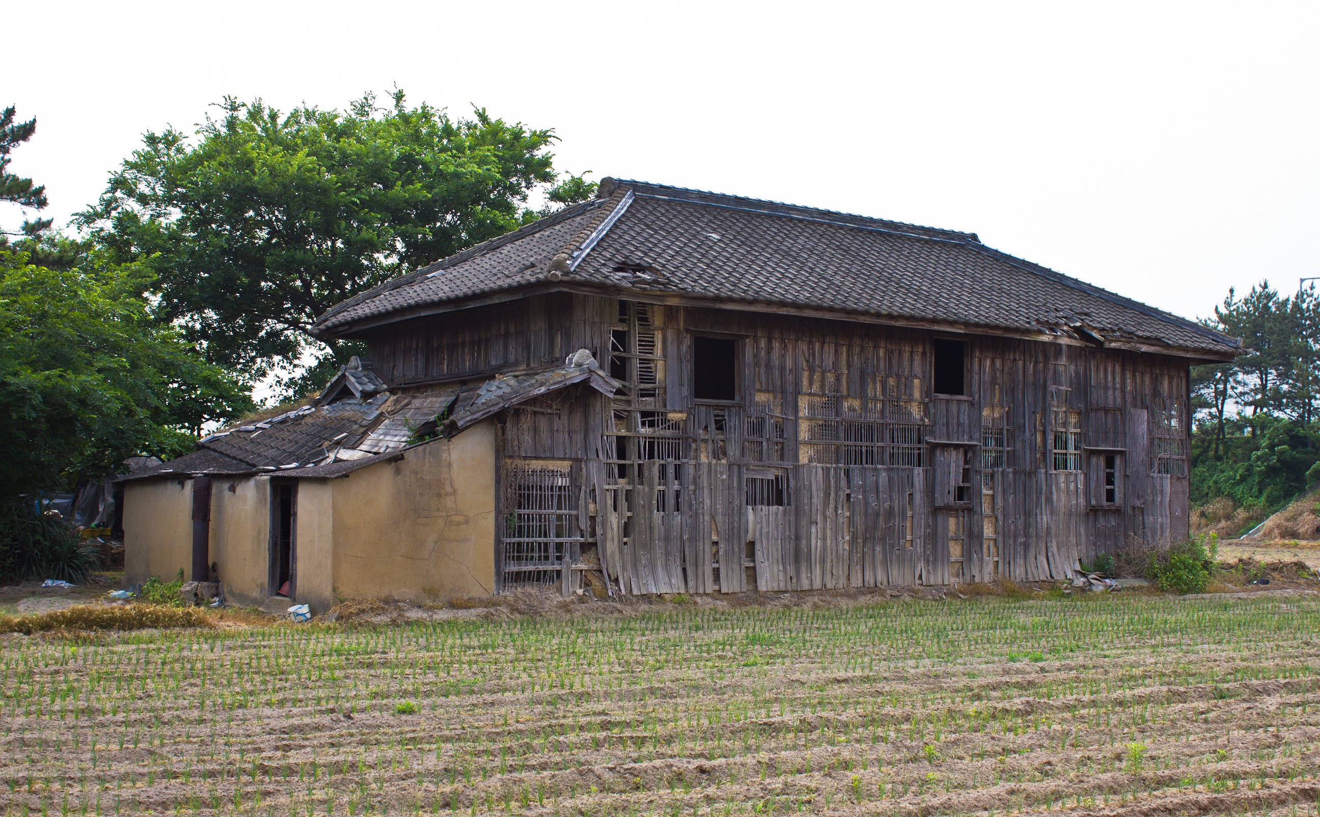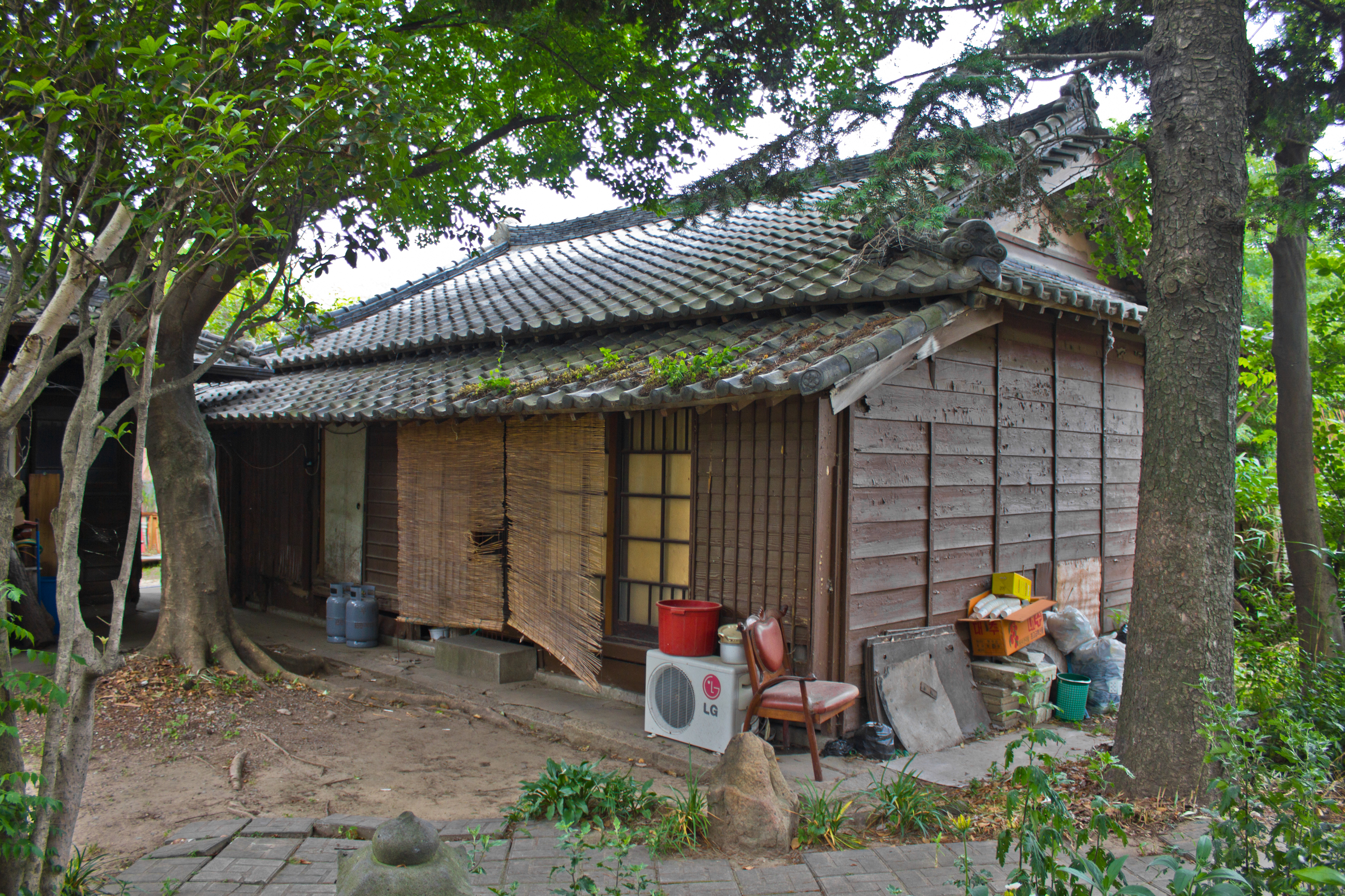 Hidden behind a grove of trees at the intersection of Daejeo-ro 221beonna-gil and Daejeojungang-ro 394beonga-gil sits a massive two story Japanese farm house. Everything about this structure is fascinating, from its crumbling mud walls to the well preserved wood on the second floor. The fact that it has survived this long with seemingly little, if any, maintenance is remarkable and could be a testament to the quality of the home’s construction. The farm house was built in a simple rectangle with a small awning that protrudes from the structure’s west side. A small concrete or cinder-block outhouse was added at some point. Though presently used for storage, the family currently living there claimed that it was a former Japanese residence. The grandmother of the household wasn’t available to talk much, and she didn’t say when the house was built exactly, but she did briefly mention that there used to be a three story temple nearby. Presumably, it was a Japanese Shinto shrine, because she hastily noted that it was torn down by order of the president after liberation. The building is not protected by the government, which is unfortunate considering that it is starting to fall apart and may be the only remaining two story Japanese farm house of this size in the Busan area. Though I’ve personally seen a few similar buildings in other parts of Korea, I’ve never seen one as untouched as this one. Despite its decay, it is an important find and should become a cultural heritage site.
