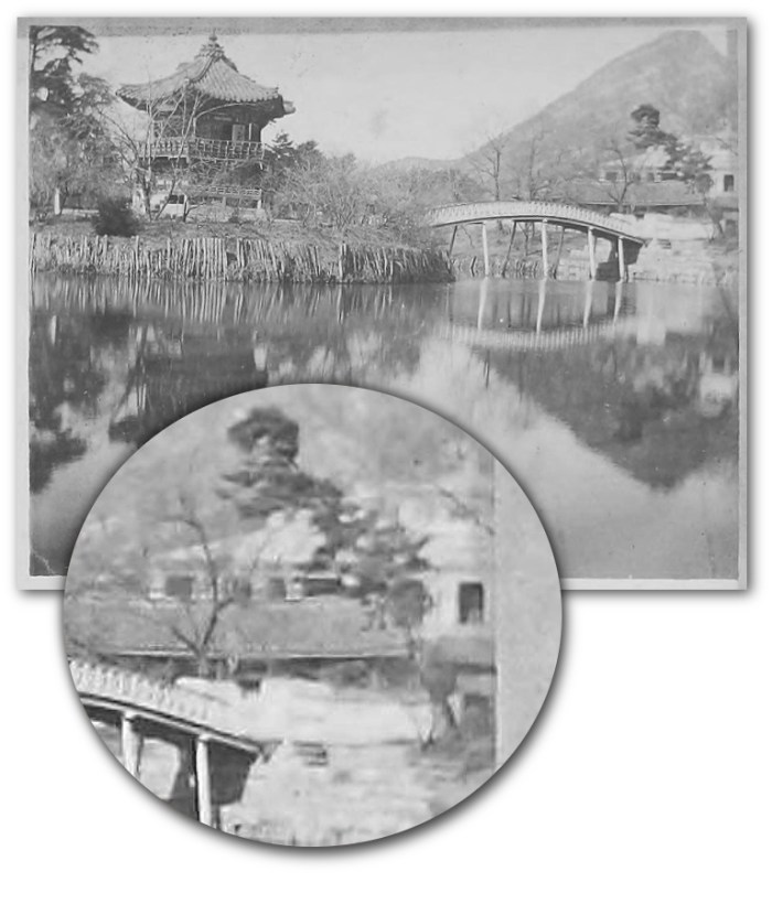 Figure 2. A view of Hyangwonjeong pavilion with Gwanmungak in the background. Undated, but probably from the 1890s. Source: Moffett Korea Collection, Princeton Theological Seminary Library.
