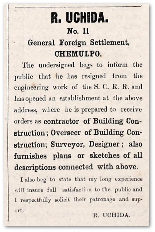 Figure 9. An advertisement for R. Uchida’s services in Chemulpo. Source: The Independent, June 22, 1899.