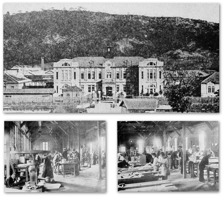 34 The government Industrial Institute, built sometime in the 1900s, probably around 1907, still stands today in Seoul at 서울 종로구 대학로 86 한국방송통신대학교 역사관. See the last section of this essay on Colonial Korea for a little more about this building, The Influence of Giyōfū Architecture and 19th Century Japan on Early Modern Korea.