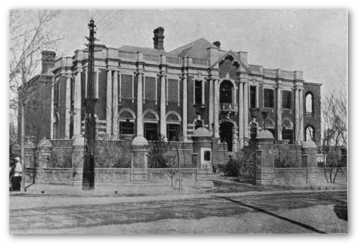 One of the first architectural examples illustrating Algar & Beesley had the ability to draft such buildings came in the form of the Tientsin Club. Built from 1903-1905, it had, among other things, a multi-purpose board room, a billiard hall, and bowling alley. Mixed-use public buildings such as this were not common in China at the time, and YMCA building design would have been relatively novel in 1900s East Asia. Even in the United States, the athletic spaces that came to typify YMCA building design, such as gymnasiums and indoor swimming pools, were only popularized at the end of the nineteenth century.10 The Tienstin Club, along with other foreign club buildings, was then probably the closest thing to a YMCA-type layout in China at the time.