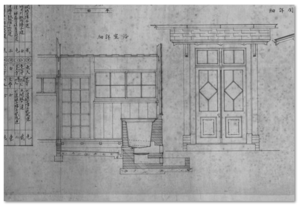 Figure 36. Plans from 1906-1910 for Japanese government office/residence buildings at Chemulpo. The plans appear to depict a bath tub that can be heated by fire from below. Source: National Archives of Korea.