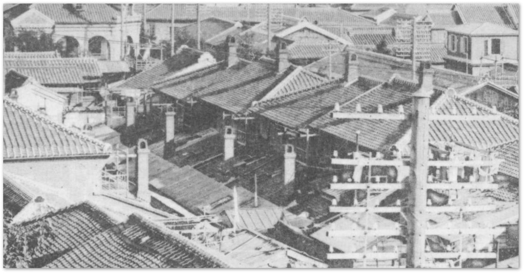 Drawing from commercial areas such as Shanghai’s Foochow Road, buildings of this type might not have been found in Korea until the 1890s. These were typically two-story shophouses with a walk-out balcony and gabled roof. Based on color photographs of this type in Seoul, it was common for them to be built of Chinese blue brick, though other versions could be found made of timber with the facade plastered. Such shophouses were built in rows that occupied a significant amount of street frontage. The shop section of the building would either occupy the front of the ground floor, or the entirety of the ground floor, with living spaces towards the back or on the second floor. Shophouses of this type were also brought into 1800s Japan through Chinese and Western influence – specifically at Dejima, Nagasaki, Kobe, and Yokohama. As such, in theory, the Chinese shophouse could have entered Korea via both Shanghai and Nagasaki.