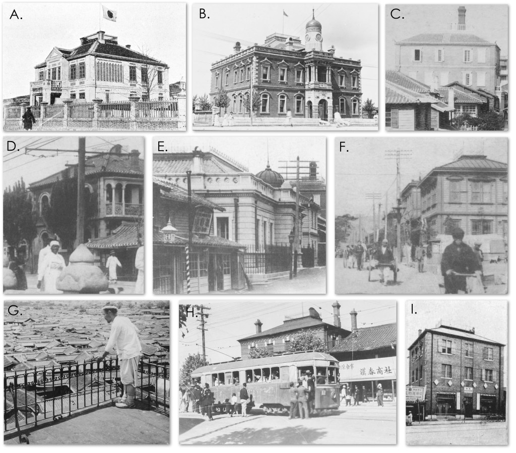 Sources: (A) Hjalmar Cassel, Det nya Östasien (Stockholm: Albert Bonniers Forlag, 1906), (B) Jack London Collection, Huntington Digital Library, (C) Princeton Theological Seminary Library, (D) Undated postcard, International Research Center for Japanese Studies, Kyoto, (E) International Research Center for Japanese Studies, Kyoto, (F) International Research Center for Japanese Studies, Kyoto, (G) Photographed by Underwood & Underwood 1904, Library of Congress, (H) Photograph, Nate Kornegay Collection, (I) Chōsen to kenchiku (June 1928), National Library of Korea.
