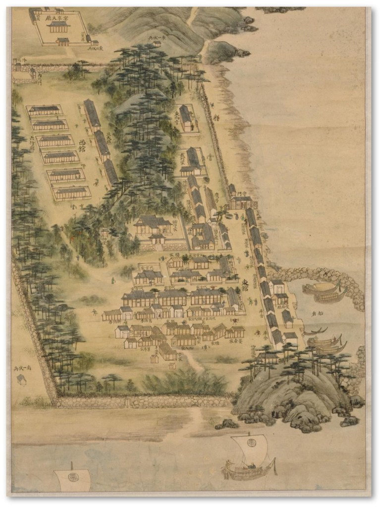 Figure 14. A painting by Byeonbok, from the 1700s, depicting the Waegwan area that would later become the Japanese settlement concession of Fusan. Source: National Museum of Korea via eMuseum.